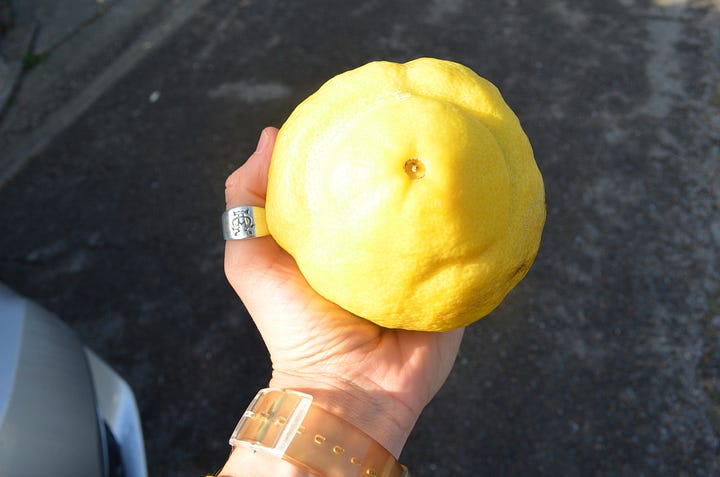 The lemon had swollen to the size of an orange, hefty in my hand.